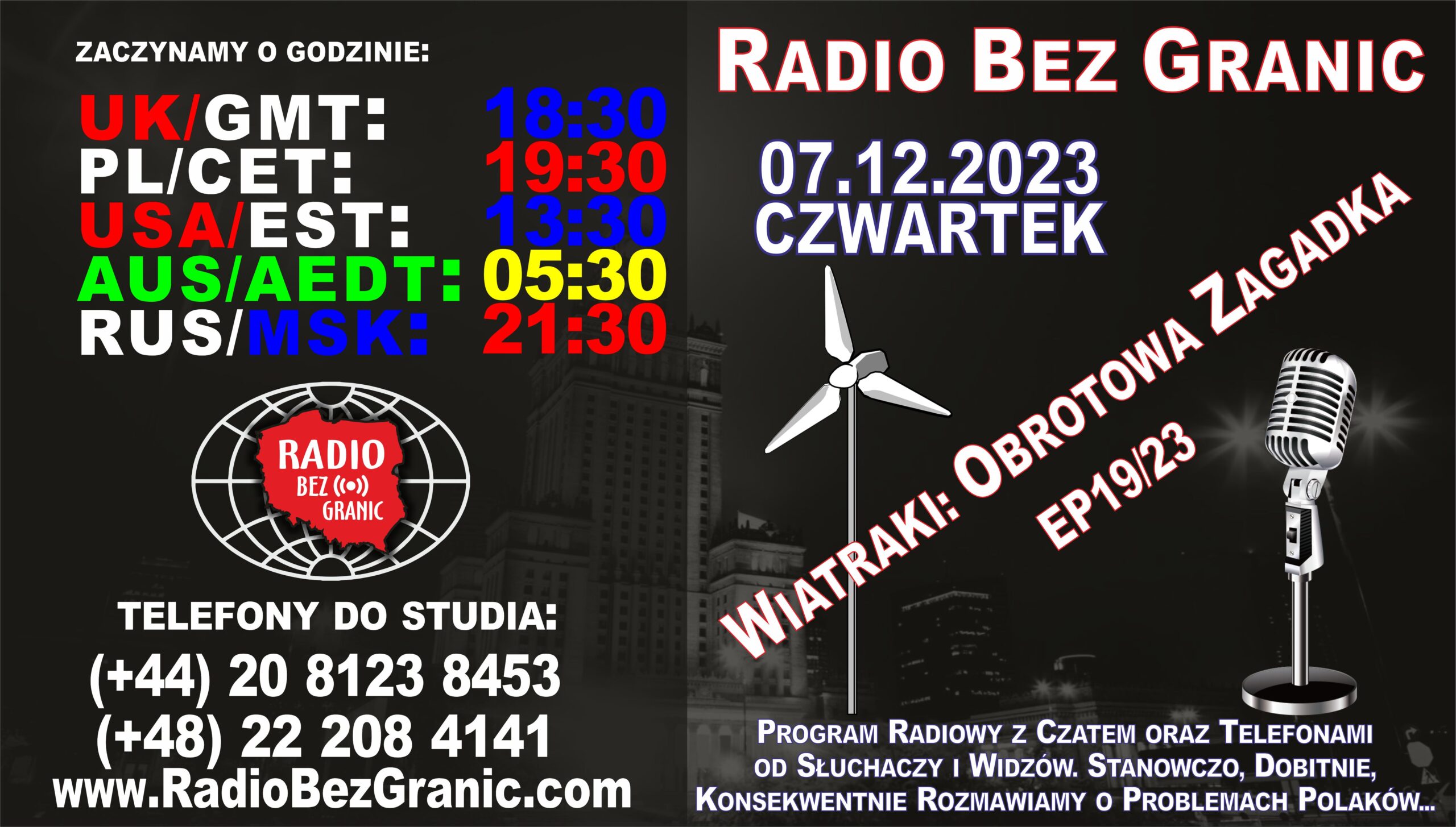 07.12.2023 – Czwartek – 18:30 (UK) – 19:30 (PL) Temat: „Wiatraki: Obrotowa Zagadka” – EP19/23