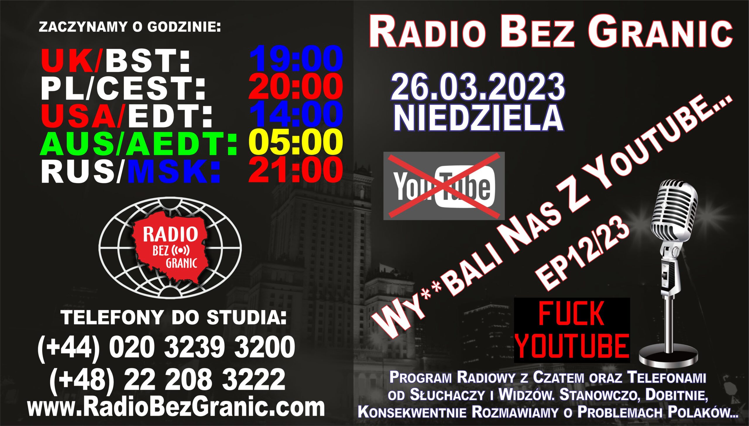 26.03.2023 – Niedziela – 19:00 (UK) – 20:00 (PL) Temat: „Wyjebali Nas z Youtube…” –